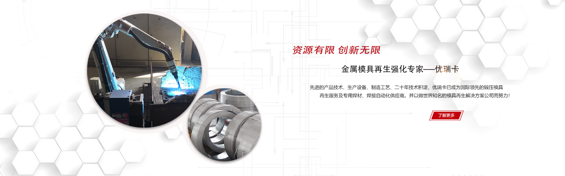 優(yōu)瑞卡是國內(nèi)知名的鍛造模具再生服務(wù)及專用焊材、模具焊接系統(tǒng)供應(yīng)商,我們吸收引用美國、德國、日本等國的先進模具焊修經(jīng)驗,結(jié)合國內(nèi)企業(yè)情況,不斷創(chuàng)新并研發(fā)了更加有效、更加成熟、更易操作的模具再生技術(shù),為廣大企業(yè)在鍛造、沖壓、壓鑄、塑料模具及機械部件維修方面提供優(yōu)質(zhì)的焊接材料、自動化焊接系統(tǒng)、模具加工用刀具和完善的再生修復服務(wù)。優(yōu)瑞卡正逐漸成為國內(nèi)外鍛造與沖壓企業(yè)創(chuàng)造更大利潤、提升核心競爭力不可或缺的重要推動力!